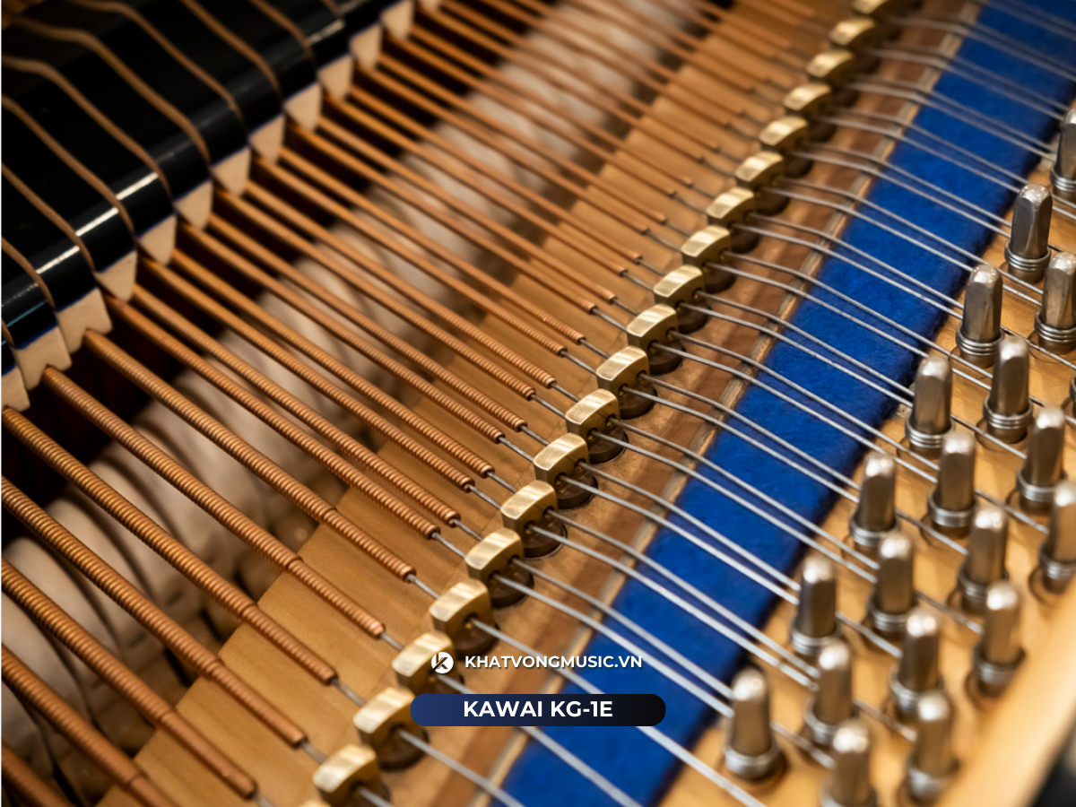 Khung đàn được đúc bằng gang nguyên khối (cast iron plate), giúp gia tăng độ bền và ổn định. Ngoài ra, Kawai sử dụng gỗ vân sam nguyên khối (solid spruce) để làm bảng cộng hưởng (soundboard) – yếu tố then chốt quyết định đến độ vang và sắc thái âm thanh của đàn.