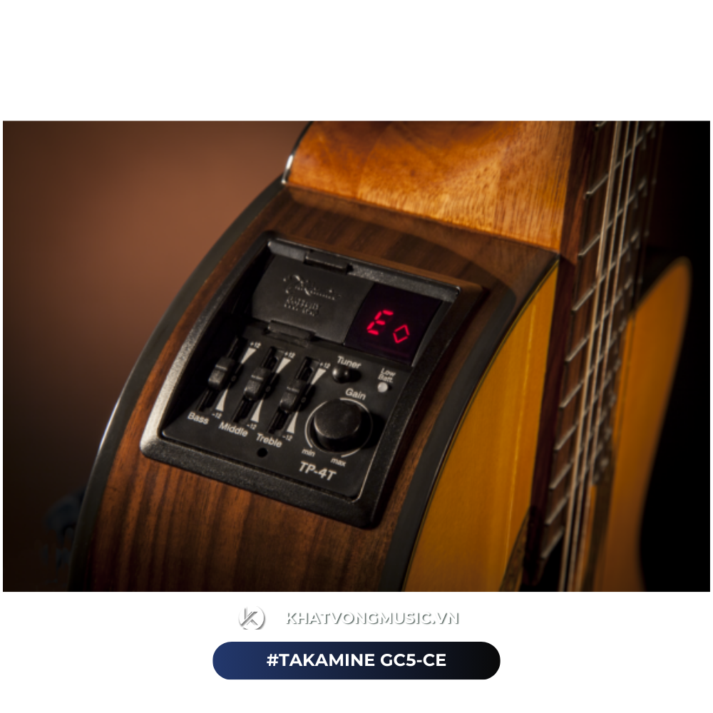 Hệ thống preamp onboard của Takamine có tích hợp tuner với 3 dải EQ tăng thêm khả năng kiểm soát âm thanh và dễ dàng điều chỉnh.