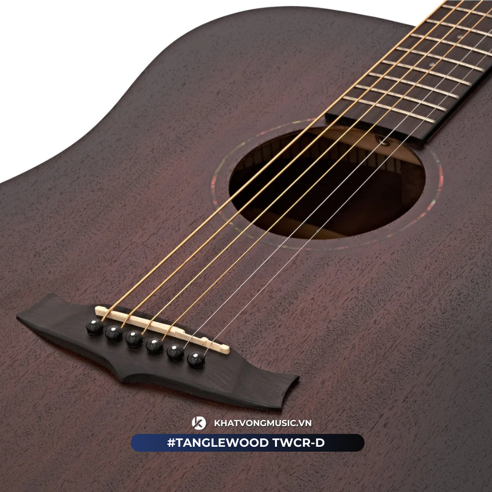 Mặt trước, lưng, hông và cần đàn Tanglewood TWCR D được làm bằng gỗ Mahogany. Đây là loại gỗ bền với thời gian, không bị cong vênh hay nứt nẻ.
